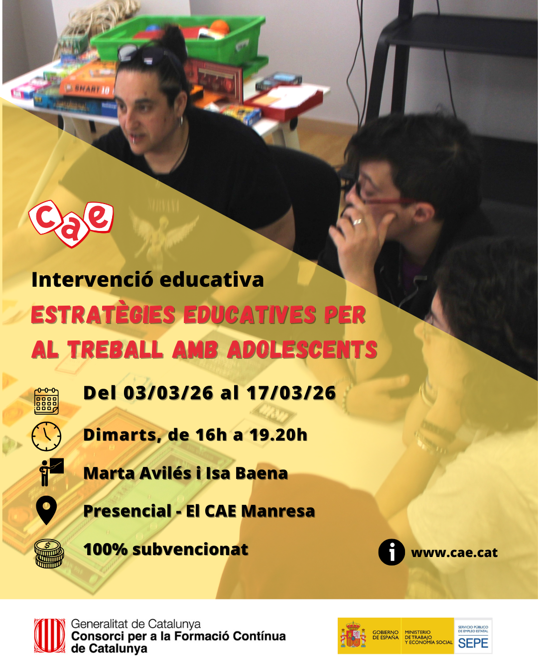 Aquest curs és un espai per entendre millor l’adolescència, posar paraules al que sovint desconcerta i dotar-nos d’eines educatives que ens ajudin a connectar, motivar i acompanyar els i les adolescents amb criteri i seguretat. Treballarem estratègies, metodologies i recursos pràctics per respondre a les seves necessitats reals, des del respecte, el vincle i la coherència educativa.