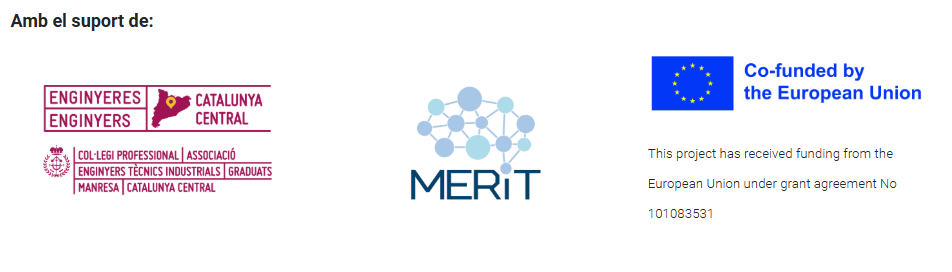 L’activitat rep el suport del Col·legi d’Enginyers Tècnics i Industrials de Manresa (CETIM) i del projecte europeu MERIT coordinat per la UPC Manresa i cofinançat pel Digital Europe Programme.